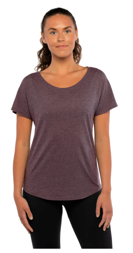 The Next Level Women’s Triblend Dolman T-Shirt, style 6760, combines comfort and style in a unique blend of rayon, polyester, and cotton. This tee features a relaxed dolman fit with loose sleeves and a flattering scoop neckline, making it a versatile choice for everyday wear.